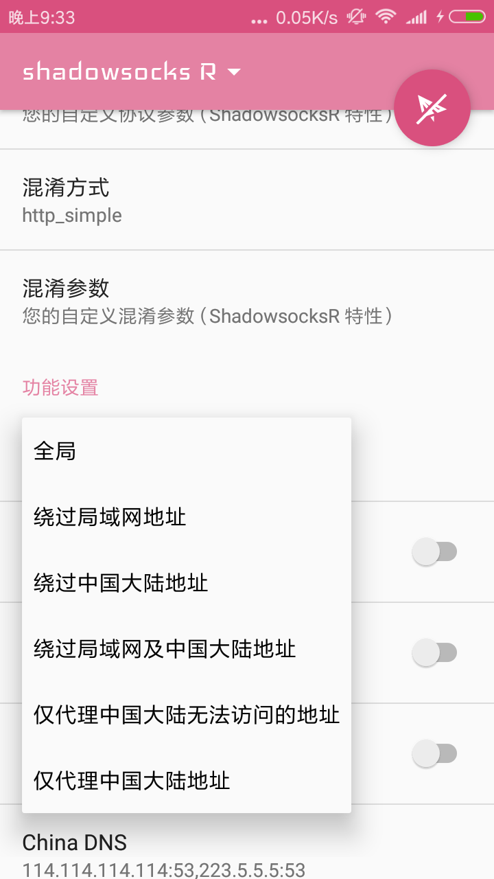 7、选择之后,会自动回到主界面,下拉,选择功能设置下面的路由,点击,选择绕过局域网移机中国大陆地址